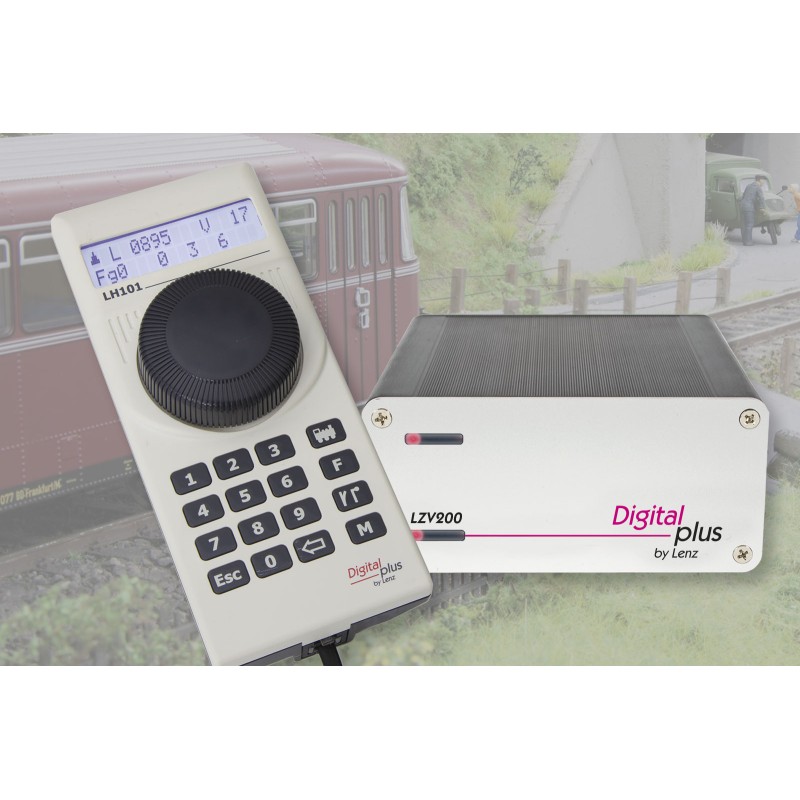The SET101 consists of the central amplifier combination LZV200 and the handheld controller LH101. You can control locomotives with the digital addresses from 1 - 9999 and also a conventional locomotive. To control the speed, the LH101 handheld controller has a finely graduated, precise rotary control. Up to 29 functions in locomotives can be switched - either in momentary or continuous operation. Double and multiple traction can be set up comfortably. Up to 1024 turnouts, signals and other accessories can be switched, and routes can be stored in the handheld controller. Settings on locomotive decoders can be made via PoM or on the programming track. The LZV200 provides a maximum current of 5A, if required it can be expanded with further LV103 amplifiers.